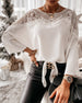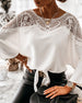 SPECIFIKATIONER Topptyp: Blusar Stil: Elegant Material: Bomullsblandningar, Spets Tillfälle: Dagligen Urringning: Rund nacke Mönstertyp: Enfärgade Typ av ärm: Fladdermushylsa Ärmlängd: Långärmad Passform typ: Lös Säsong: Vår, Sommar, Höst Detaljer: Lappverk, Spets Paketet innehåller: 1 x Blus STORLEKSTABELL(cm) Storlek Byst Längd...