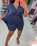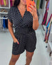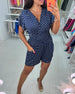 Casual pricktryckt jumpsuit med V-ringning och kort ärm