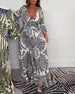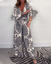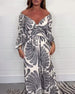 SPECIFIKATIONER Stil: Vintage Material: Bomullsblandningar Mönstertyp: Tryckt Urringning: V-hals_V Typ av ärm: Flare ärm Ärmlängd: Nio poängs sleeve Typ Byxor: Breda ben Byxlängd: Lång Passform typ: Vanlig Säsong: Vår, Sommar Detaljer: Lappverk Tillfälle: Dagligen Paketet innehåller: 1 x Jumpsuits STORLEKSTABELL(cm) Storlek Byst Längd S 95...