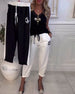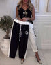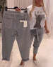 Fashionabla enfärgade byxor med ficka och oregelbundna lapptäcken