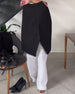 Fashionabla enfärgade byxor med ficka och oregelbundna lapptäcken