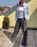 Lösa avslappnade randiga raka byxor
