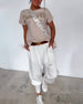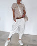 Casual enfärgade byxor med dragsko och paljetter