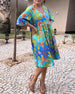 SPECIFIKATIONER Stil: Enkel Material: Bomullsblandningar Klänningstyp: A-linje Klänning längd: Midi Urringning: V-hals_V Mönstertyp: Tryckt Typ av ärm: Vanlig ärm Ärmlängd: 3/4 ärm Passform typ: Vanlig Säsong: Vår, Höst Tillfälle: Dagligen, Semester Paketet innehåller: 1 x Klänning STORLEKSTABELL(cm) Storlek Byst Längd S 95 118 M 10...