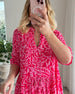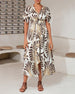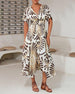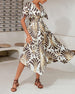 SPECIFIKATIONER Stil: Enkel Material: Bomullsblandningar Klänningstyp: Skiftklänning Klänning längd: Midi Urringning: V-hals_V Mönstertyp: Tryckt Typ av ärm: Vanlig ärm Ärmlängd: 3/4 ärm Detaljer: Snöra upp Passform typ: Vanlig Säsong: Vår,Sommar Tillfälle: Dagligen Paketet innehåller: 1 x Klänning STORLEKSTABELL(cm) Storlek Byst Längd S 9...