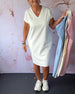 SPECIFIKATIONER Stil: Enkel Material: 100% Polyester Klänningstyp: Skiftklänning Klänning längd: Midi Urringning: V-hals Mönstertyp: Enfärgade Typ av ärm: Vanlig ärm Ärmlängd: Halvärm Detaljer: Ficka, Slits Passform typ: Vanlig Säsong: Vår, Sommar, Höst Tillfälle: Dagligen Paketet innehåller: 1 x Klänning STORLEKSTABELL(cm) Sto...
