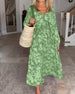 SPECIFIKATIONER Stil: Enkel Material: 95% polyester, 5% spandex Klänningstyp: Skiftklänning Klänning längd: Maxi Urringning: V-hals_V Mönstertyp: Tryckt Typ av ärm: Volangärm Ärmlängd: 3/4 ärm Detaljer: Rufsad Passform typ: Lös Säsong: Vår, Sommar, Höst Tillfälle: Dagligen Paketet innehåller: 1 x Klänning STORLEKSTABELL(cm) Storlek Byst...