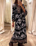 Lång klänning med fyrkantigt tryck med lös rund hals