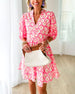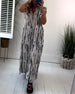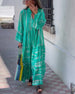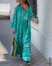 Tryckt avslappnad V-ringad lång klänning med utsvängda ärmar