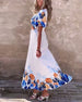 SPECIFIKATIONER Stil: Enkel Material: 5% Spandex,95% Polyester Klänningstyp: A-linje Klänning längd: Maxi Urringning: V-hals Mönstertyp: Tryckt Typ av ärm: Vanlig ärm Ärmlängd: Kortärmad Detaljer: Snöra upp Passform typ: Vanlig Säsong: Vår, Sommar, Höst Tillfälle: Dagligen Paketet innehåller: 1 x Klänning STORLEKSTABELL(cm) St...