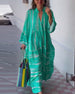 Casual V-ringad lös lång klänning med utsvängda ärmar