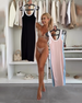 Moderiktig tryckt slimmad klänning med remmar och raglanärm