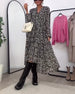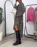 Klänning Långärmad Leopardskrivmönster