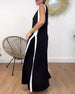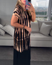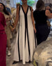 Trendig ärmlös klänning med V-ringad kontrasttryck