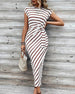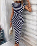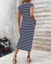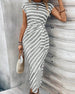 SPECIFIKATIONER Stil: Chic Material: Bomullsblandningar Klänningstyp: A-linje Klänning längd: Midi Urringning: Rund nacke Mönstertyp: Randig Typ av ärm: Raglan ärm Ärmlängd: Kortärmad Detaljer: Bandage,Blandade Passform typ: Vanlig Säsong: Sommar Tillfälle: Dagligen Paketet innehåller: 1 x Klänning STORLEKSTABELL(cm) Storlek Byst Midjeomkret...