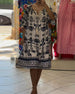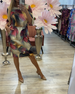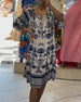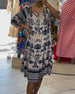 Klänning avslappnad kortärmad slits rund hals tryckt