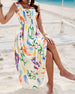 SPECIFIKATIONER Stil: Elegant Material: Bomullsblandningar Klänningstyp: A-linje Klänning längd: Maxi Urringning: Kåpa hals Mönstertyp: Tryckt Typ av ärm: Vanlig ärm Ärmlängd: Kortärmad Detaljer: Lappverk,Blandade Passform typ: Vanlig Säsong: Sommar Tillfälle: Dagligen Paketet innehåller: 1 x Klänning STORLEKSTABELL(cm) Storlek Byst Längd ...