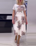 SPECIFIKATIONER Stil: Enkel Material: Bomullsblandningar Klänningstyp: Skiftklänning Klänning längd: Midi Urringning: Rund nacke Mönstertyp: Tryckt Typ av ärm: Vanlig ärm Ärmlängd: Kortärmad Detaljer: Slits Passform typ: Vanlig Säsong: Sommar Tillfälle: Dagligen Paketet innehåller: 1 x Klänning STORLEKSTABELL(cm) Storlek Byst Längd S 95 12...