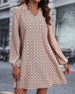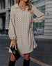 SPECIFIKATIONER Stil: Enkel Material: 95% polyester, 5% spandex Klänningstyp: Skiftklänning Klänning längd: Knälängd Urringning: V-hals_V Mönstertyp: Geometriskt tryck Typ av ärm: Vanlig ärm Ärmlängd: Långärmad Passform typ: Vanlig Säsong: Vår, Höst, Vinter Tillfälle: Dagligen Paketet innehåller: 1 x Klänning STORLEKSTABELL(cm) Storle...
