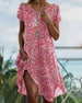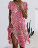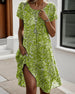 Klänning Rund Hals Kort Ärm Blommig Tryck