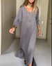 SPECIFIKATIONER Stil: Enkel Material: Bomullsblandningar Klänningstyp: A-linje Klänning längd: Maxi Urringning: V-hals_V Mönstertyp: Färgblock Typ av ärm: Vanlig ärm Ärmlängd: 3/4 ärm Detaljer: Blandade Passform typ: Lös Säsong: Vår, Sommar, Höst Tillfälle: Dagligen Paketet innehåller: 1 x Klänning STORLEKSTABELL(cm) Storlek Byst L...