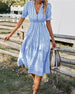 SPECIFIKATIONER Stil: Enkel Material: 5% Spandex,95% Polyester Klänningstyp: A-linje Klänning längd: Midi Urringning: V-hals_V Mönstertyp: Randig, Tryckt Typ av ärm: Puffärm Ärmlängd: Kortärmad Detaljer: Knappar Passform typ: Vanlig Säsong: Vår, Sommar, Höst Tillfälle: Dagligen Paketet innehåller: 1 x Klänning STORLEKSTABELL(cm) S...