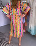 SPECIFIKATIONER Stil: Enkel Material: Bomullsblandningar Klänningstyp: Skiftklänning Klänning längd: Midi Urringning: V-hals_V Mönstertyp: Tryckt Typ av ärm: Vanlig ärm Ärmlängd: Kortärmad Detaljer: Slits Passform typ: Vanlig Säsong: Vår,Sommar Tillfälle: Dagligen Paketet innehåller: 1 x Klänning STORLEKSTABELL(cm) Storlek Byst Längd S 97 ...