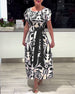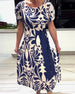 SPECIFIKATIONER Stil: Enkel Material: Bomullsblandningar Klänningstyp: A-linje Klänning längd: Knälängd Urringning: V-hals_V Mönstertyp: Tryckt Typ av ärm: Vanlig ärm Ärmlängd: Halvärm Detaljer: Spänne,Rufsad Passform typ: Vanlig Säsong: Vår,Sommar,Höst Tillfälle: Dagligen Paketet innehåller: 1 x Klänning STORLEKSTABELL(cm) Storlek Byst Läng...