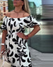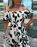 Klänning Elegant Off-Shoulder Tryckt