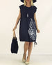 Avslappnad spetsklänning med färgblockstryck i lapel