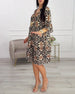 Knappad Klänning Med V-Ringning Och Långa Ärmar