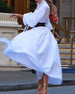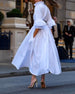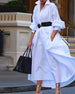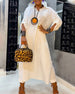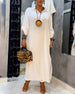 SPECIFIKATIONER Stil: Enkel Material: Bomullsblandningar Klänningstyp: A-linje Klänning längd: Maxi Urringning: Slag Mönstertyp: Enfärgade Typ av ärm: Puffärm Ärmlängd: 3/4 ärm Detaljer: Ficka,Knappar,Blandade Passform typ: Vanlig Säsong: Vår,Sommar Tillfälle: Dagligen Paketet innehåller: 1 x Klänning STORLEKSTABELL(cm) Storlek Byst Längd ...