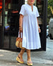 SPECIFIKATIONER Stil: Enkel Material: Bomullsblandningar Klänningstyp: A-linje Klänning längd: Knälängd Urringning: V-hals_V Mönstertyp: Enfärgade Typ av ärm: Vanlig ärm Ärmlängd: Kortärmad Detaljer: Lappverk, Blandade Passform typ: Vanlig Säsong: Vår, Sommar, Höst Tillfälle: Dagligen Paketet innehåller: 1 x Klänning STORLEKSTABELL(cm) Storl...