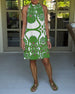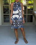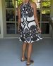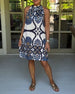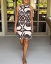 Geometriskt tryck ärmlös, rund halsad elegant klänning