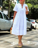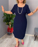 SPECIFIKATIONER Stil: Elegant Material: Bomullsblandningar Klänningstyp: A-linje Klänning längd: Midi Urringning: Rund nacke Mönstertyp: Enfärgade Typ av ärm: Vanlig ärm Ärmlängd: Halvärm Passform typ: Vanlig Säsong: Vår, Sommar, Höst Tillfälle: Vardag Paketet innehåller: 1 x Klänning STORLEKSTABELL(cm) Storlek Byst Längd S 95 1...
