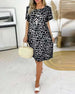 SPECIFIKATIONER Stil: Elegant Material: Bomullsblandningar Klänningstyp: Skiftklänning Klänning längd: Knälängd Urringning: V-hals_V Mönstertyp: Leopard Typ av ärm: Vanlig ärm Ärmlängd: 3/4 ärm Detaljer: Lappverk, Rufsad Passform typ: Vanlig Säsong: Vår, Sommar Tillfälle: Dagligen Paketet innehåller: 1 x Klänning STORLEKSTABELL(cm) Storlek B...