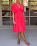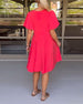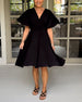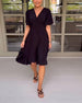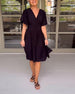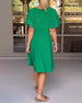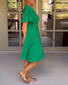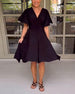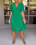 Enfärgad avslappnad klänning i midjan med V-ringning och fjärilsärm