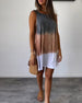 Elegant tie-dye klänning med patchwork dragsko och ballongärm
