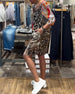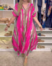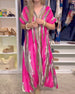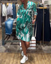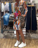 Casual klänning med leopard och färgglatt tryck och djupt V