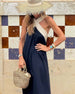 Korsad Rygglös Elegant Klänning Med Kontrastfärg