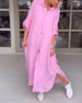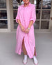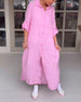 SPECIFIKATIONER Stil: Enkel Material: Bomull och linne Klänningstyp: Skjorta Klänning längd: Maxi Urringning: Slag Mönstertyp: Enfärgade Typ av ärm: Vanlig ärm Ärmlängd: Långärmad Detaljer: Knappar, Slits Passform typ: Vanlig Säsong: Vår, Sommar, Höst Tillfälle: Dagligen Paketet innehåller: 1 x Klänning STORLEKSTABELL(cm) Storlek...