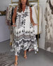 Klänning Elegant Trekvartsärm Tryckt Midja