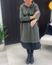 Avslappnad klänning med luva i cirkeltryck med dragkedja