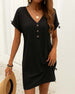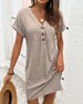 SPECIFIKATIONER Stil: Enkel Material: Bomullsblandningar Klänningstyp: Skiftklänning Klänning längd: Över knä Urringning: V-hals_V Mönstertyp: Enfärgade Typ av ärm: Vanlig ärm Ärmlängd: Kortärmad Detaljer: Knappar Passform typ: Vanlig Säsong: Vår,Sommar Tillfälle: Dagligen Paketet innehåller: 1 x Klänning STORLEKSTABELL(cm) Storlek Byst ...