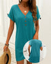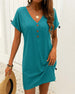 SPECIFIKATIONER Stil: Elegant Material: Bomull Klänningstyp: A-linje Klänning längd: Midi Urringning: V-hals_V Mönstertyp: Enfärgade Typ av ärm: Flare ärm Ärmlängd: Halvärm Detaljer: Lappverk, Urgröpande Passform typ: Vanlig Säsong: Vår, Sommar, Höst Tillfälle: Dagligen Paketet innehåller: 1 x Klänning STORLEKSTABELL(cm) Storlek...
