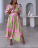 SPECIFIKATIONER Stil: Elegant, Fest Material: 100% Polyester Klänningstyp: A-linje Klänning längd: Maxi Urringning: V-hals_V Mönstertyp: Tryckt Typ av ärm: Puffärm Ärmlängd: Halvärm Detaljer: Lappverk, Blandade Passform typ: Vanlig Säsong: Vår, Sommar, Höst Tillfälle: Dagligen, Fest Paketet innehåller: 1 x Klänning STORLEKSTABELL(cm) ...