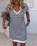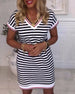 SPECIFIKATIONER Stil: Enkel Material: Bomullsblandningar Klänningstyp: Skiftklänning Klänning längd: Över knä Urringning: V-hals_V Mönstertyp: Randig,Färgblock Typ av ärm: Vanlig ärm Ärmlängd: Kortärmad Passform typ: Vanlig Säsong: Vår,Sommar Tillfälle: Dagligen Paketet innehåller: 1 x Klänning STORLEKSTABELL(cm) Storlek Byst Längd S 9...
