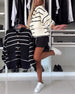 Randig casual jacka med huva med huva