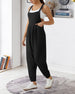 SPECIFIKATIONER Stil: Enkel Kategori: Jumpsuits Material: Bomullsblandningar Mönstertyp: Färgblock Urringning: V-hals_V Ärmlängd: Ärmlös Typ Byxor: Breda ben Byxlängd: Lång Passform typ: Vanlig Säsong: Vår,Sommar Detaljer: Ficka,Rygglös,Korsband Tillfälle: Dagligen Paketet innehåller: 1 x Jumpsuits STORLEKSTABELL(cm) Storlek Byst Längd S 9...