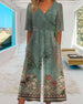 SPECIFIKATIONER Stil: Vintage Material: Bomullsblandningar Mönstertyp: Tryckt Urringning: V-hals_V Typ av ärm: Flare ärm Ärmlängd: Nio poängs sleeve Typ Byxor: Breda ben Byxlängd: Lång Passform typ: Vanlig Säsong: Vår, Sommar Detaljer: Lappverk Tillfälle: Dagligen Paketet innehåller: 1 x Jumpsuits STORLEKSTABELL(cm) Storlek Byst Längd S 95...
